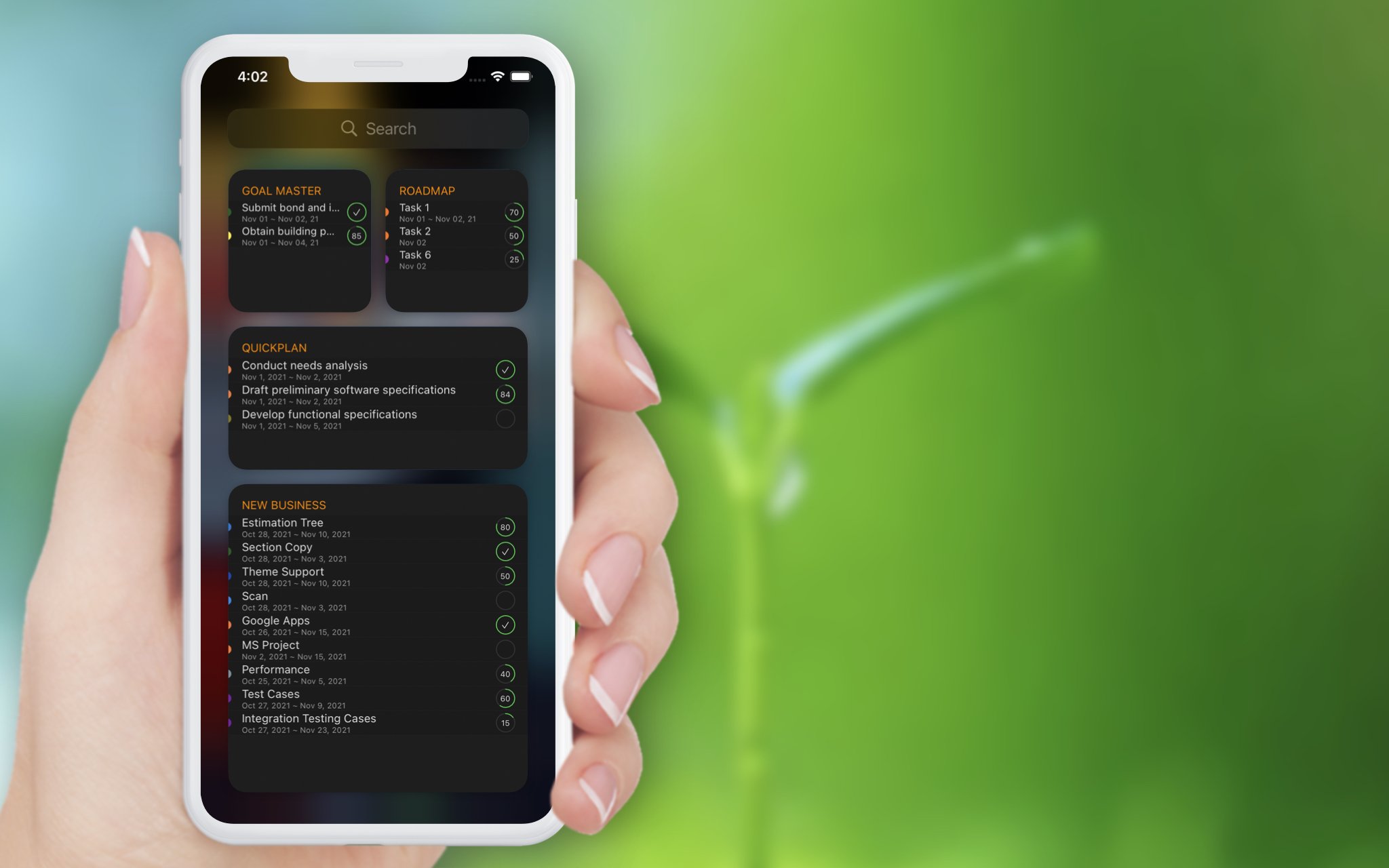 QuickPlan prioritizes ease and efficiency as the primary goals in organizing your professional projects, plans, efforts, goals, and life on Apple devices. The app is designed to provide users with the most effective planning practice with minimal effort and learning.