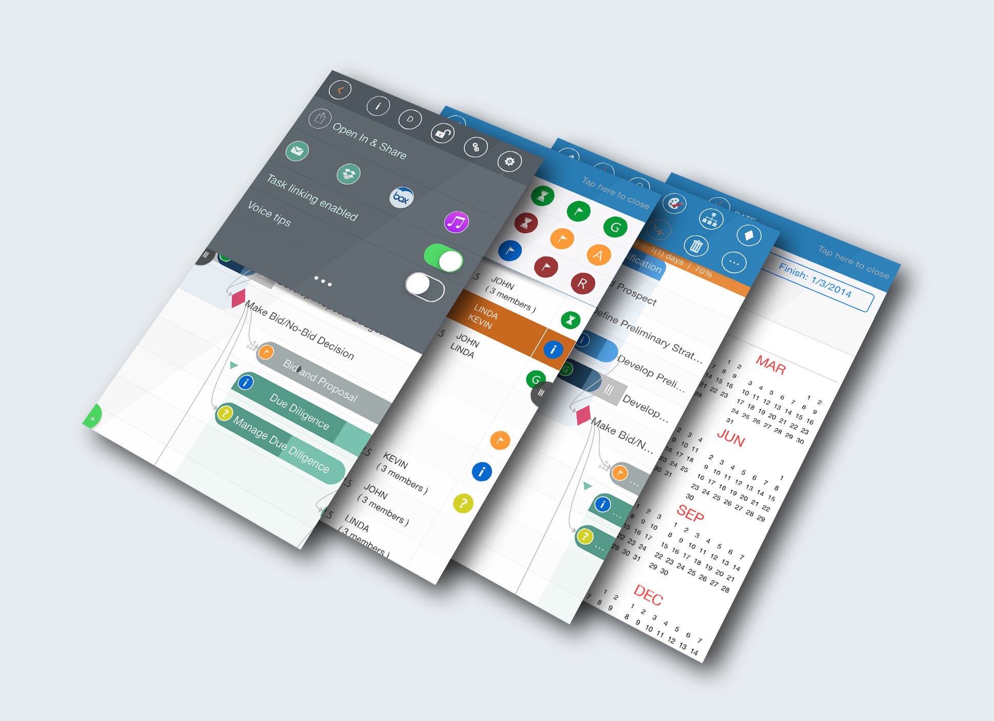 Share projects across teams and devices via Dropbox, Box, iTunes, and Airdrop, supported in the app.