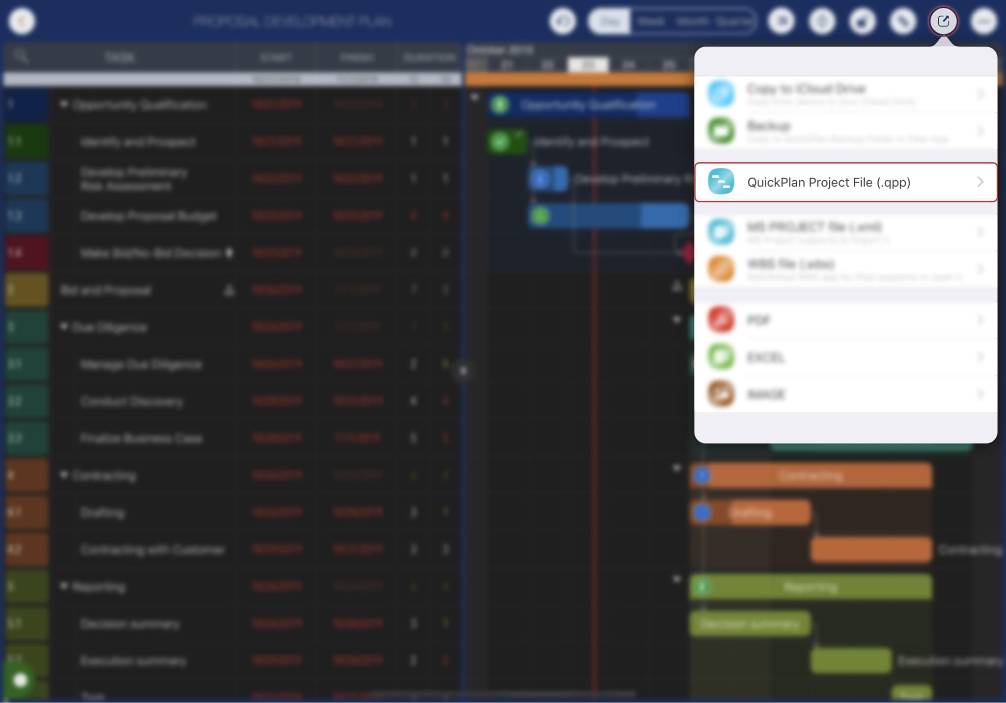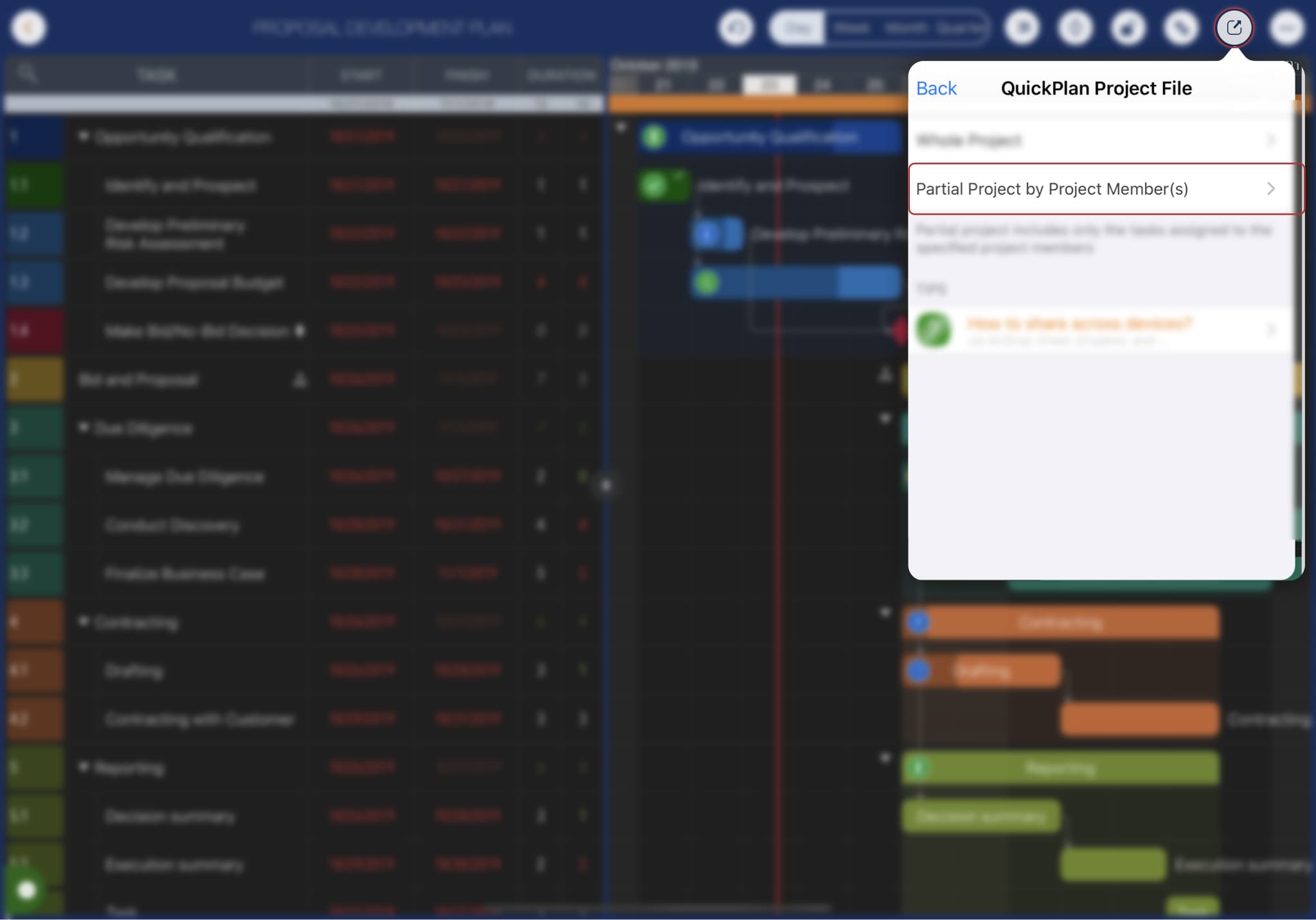QuickPlan for iPad 10.1 supports to exporting partial project directly.