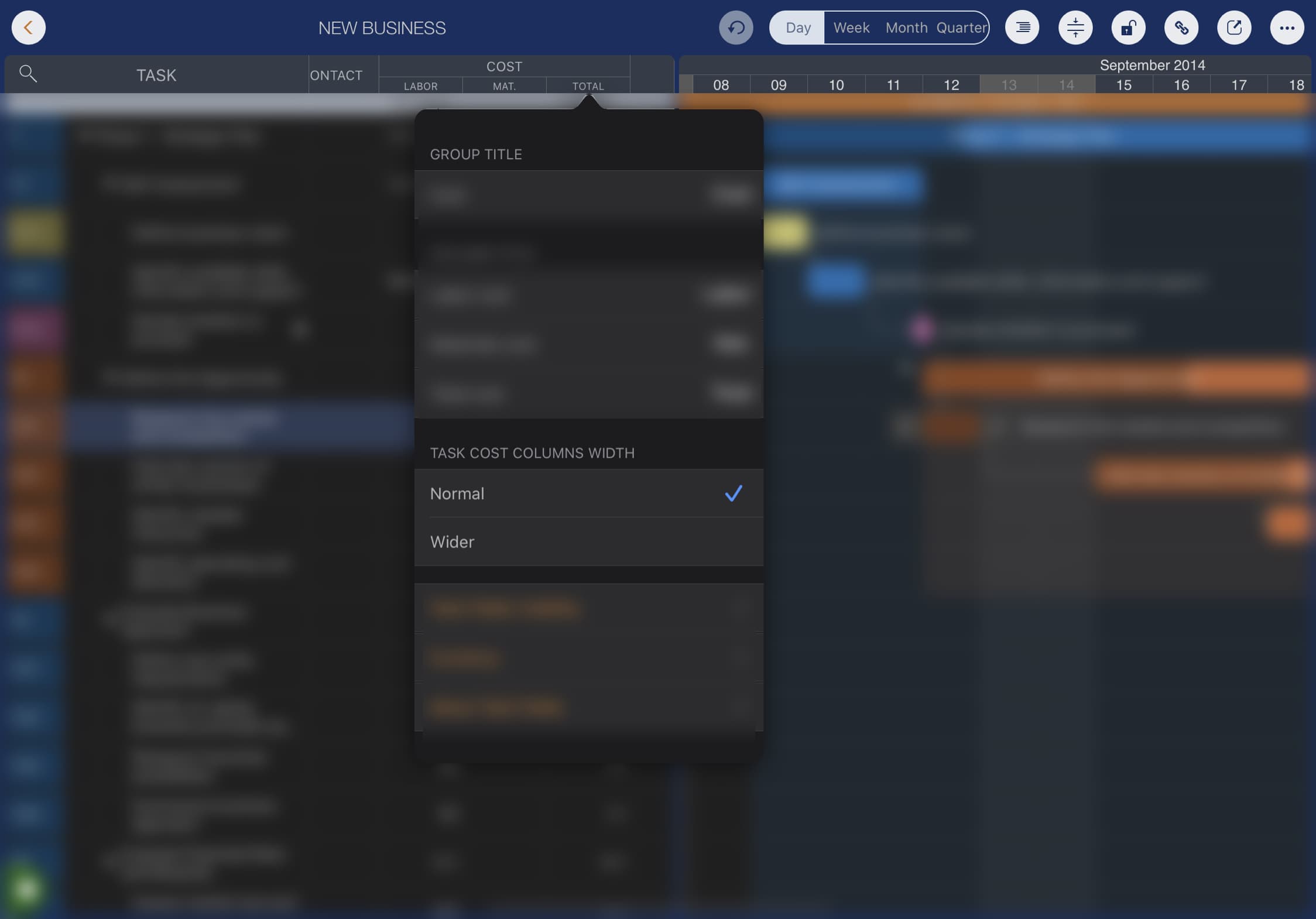 - Cost columns wider width option.