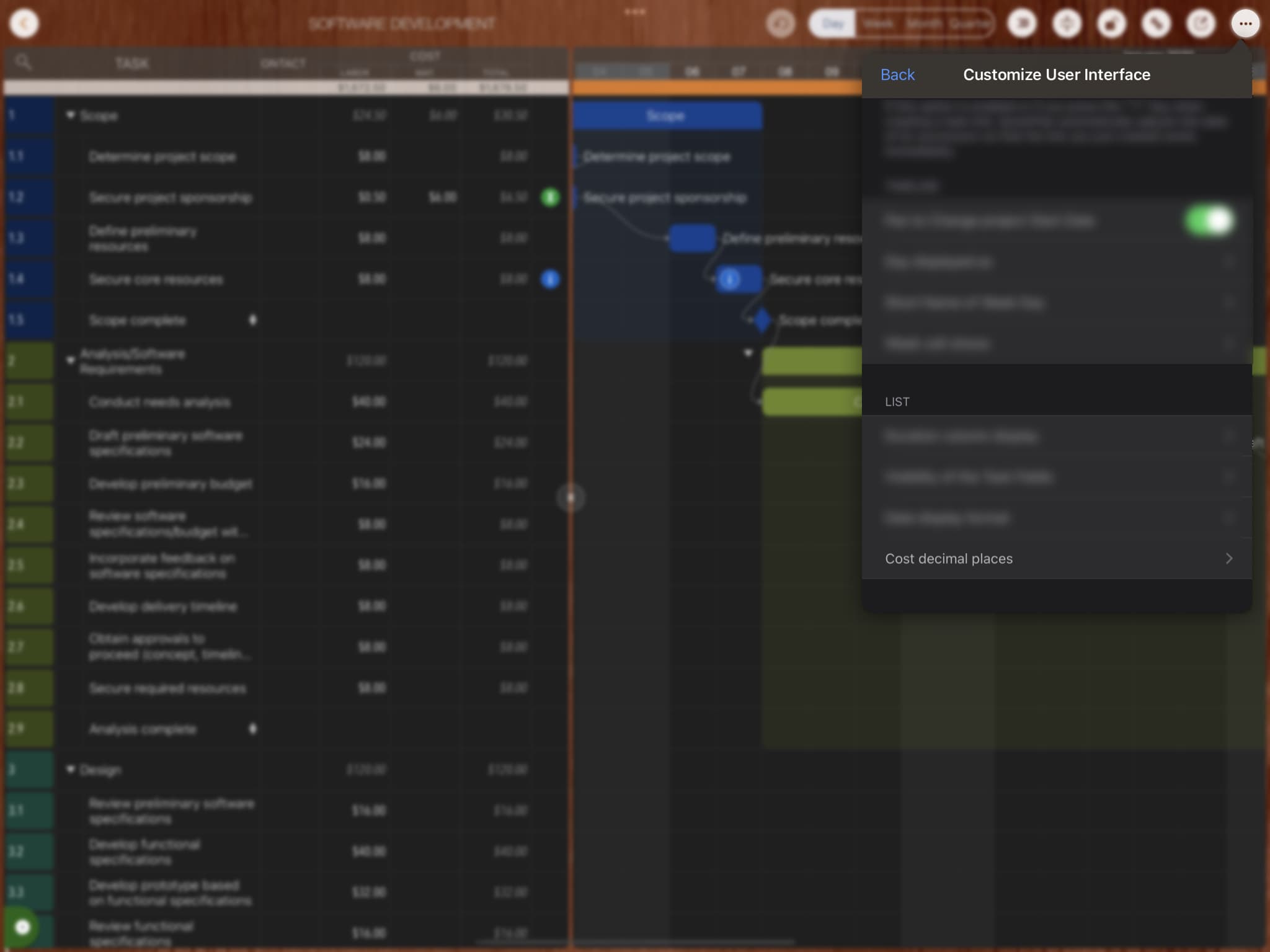 The options that allow you to specify the maximum decimal places and fixed decimal places for displaying costs.