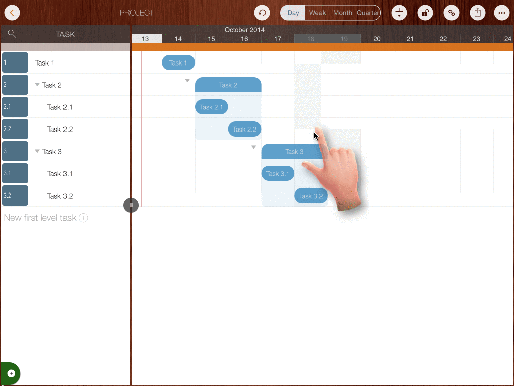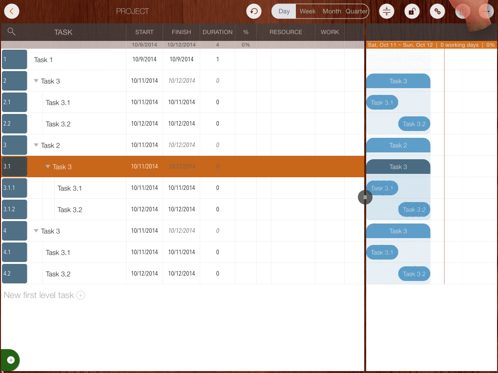 - Tap with TWO fingers on Gantt Chart to collapse or expand all tasks simultaneously.