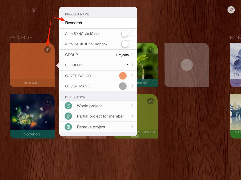 In an opened project view, tap the Project Name on the Toolbar to edit project properties.