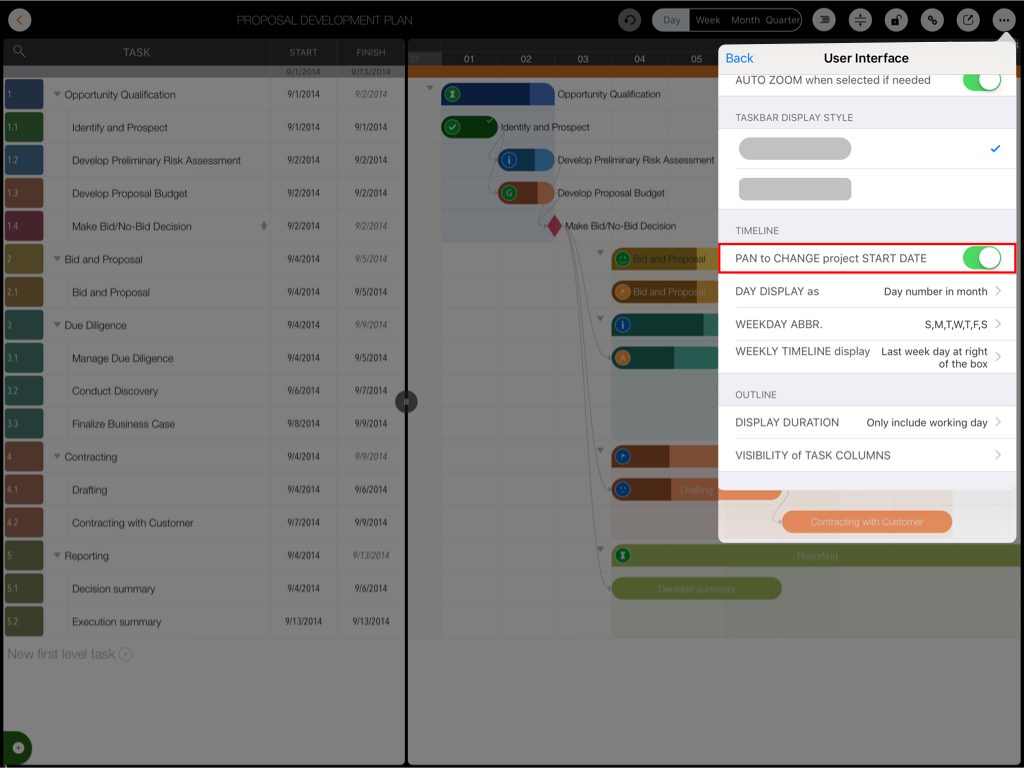 And there is a UI customization option to enable / disable the gesture for changing the project start date