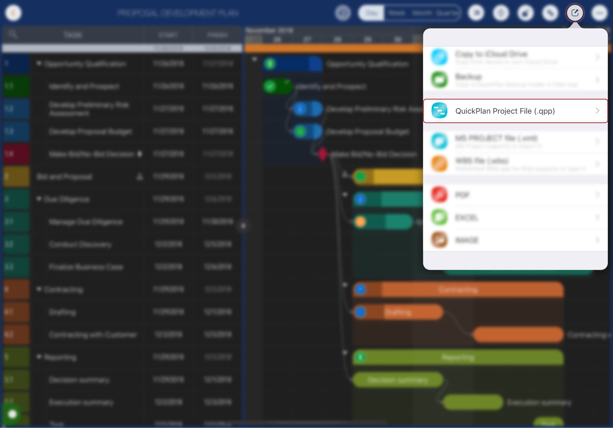 After the .qpp be transferred to another device, we can import the .qpp file into the QuickPlan app.