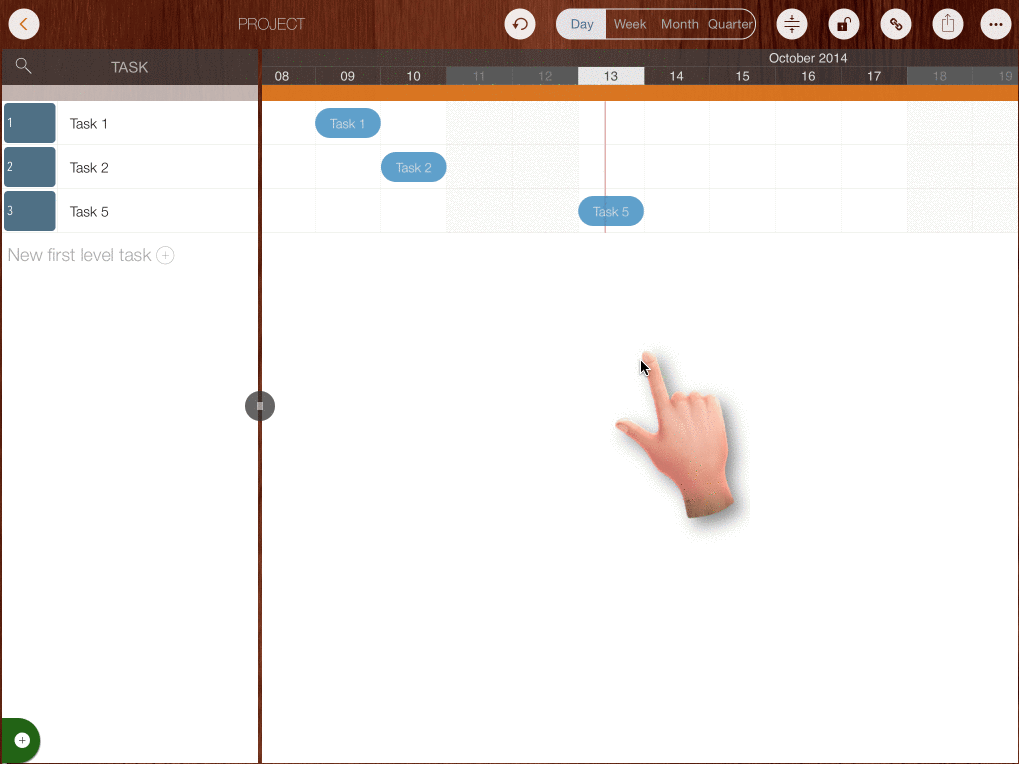 - Select a task, then tap the "+" button on the left-bottom corner in the project view