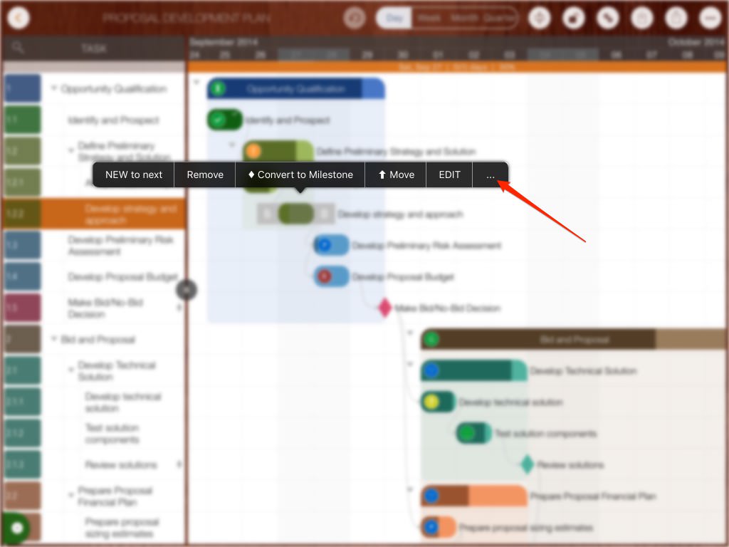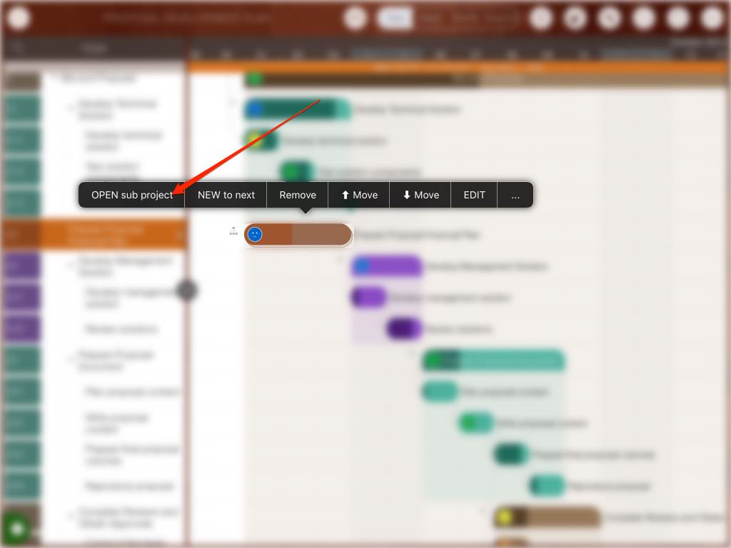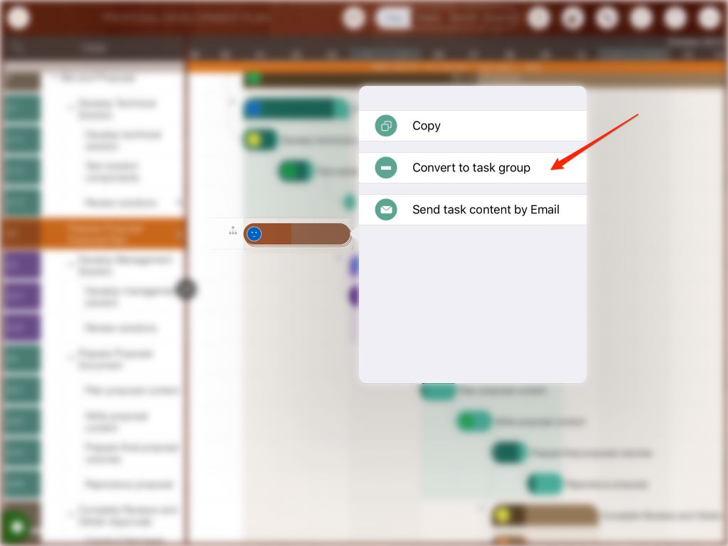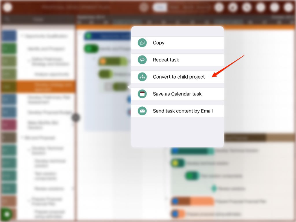 - Swipe left on the Task Name column in the Outline panel to indent the task.