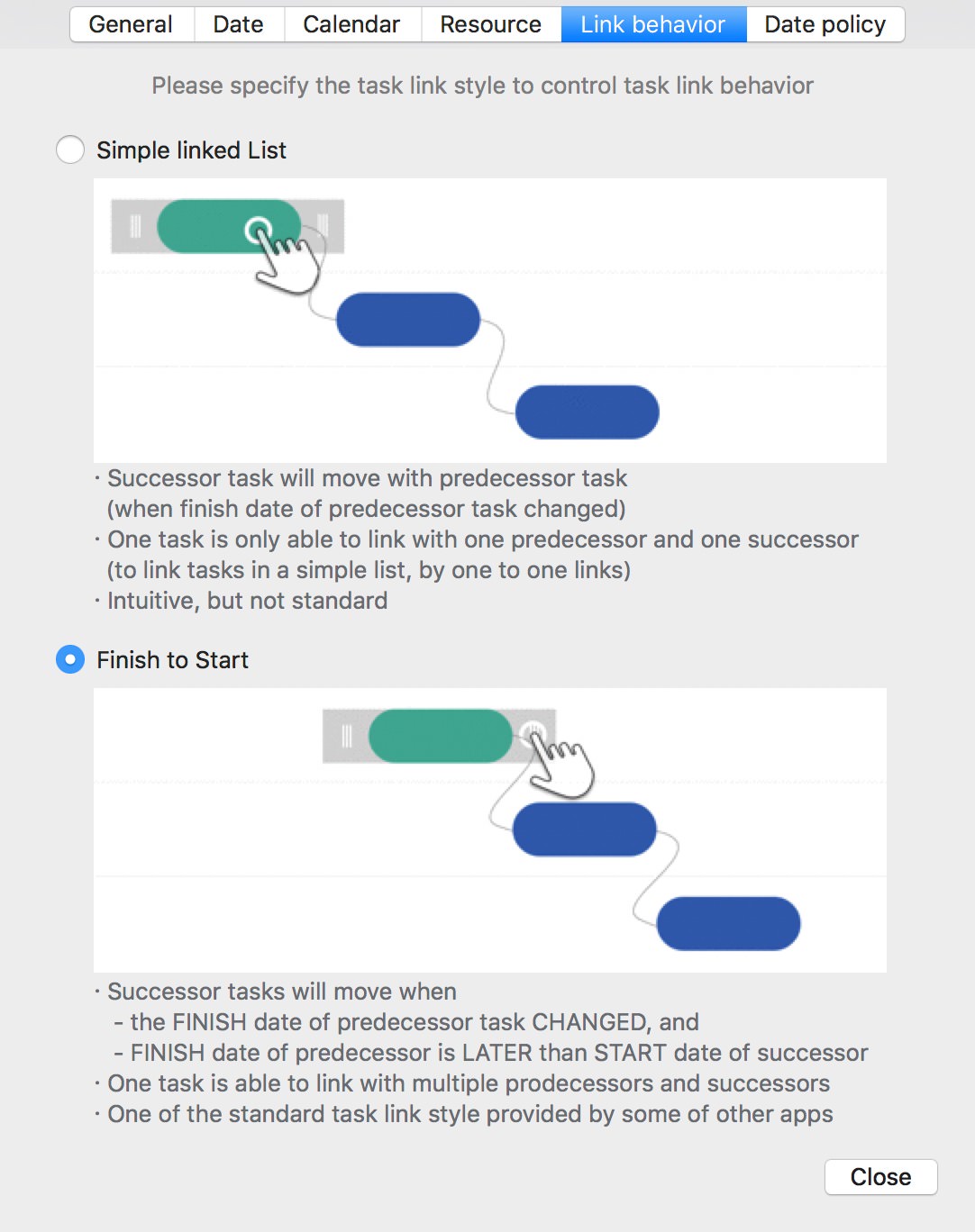 Configure how task links affect scheduling. Click here to learn more.