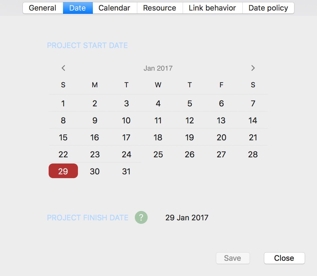 Project properties – Start Date