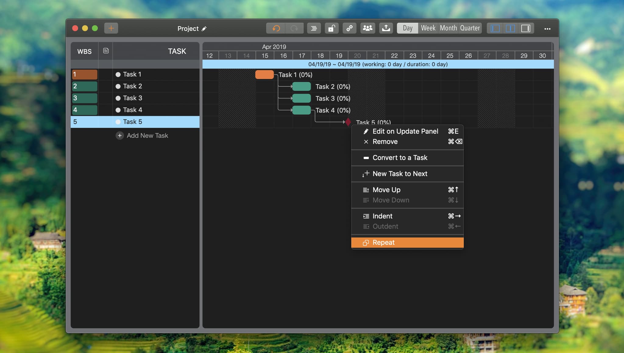 - If task1 does not link with task2, create a new task link between them. And if the "⌘" key is also being pressed, the successor (task2) date will change automatically.