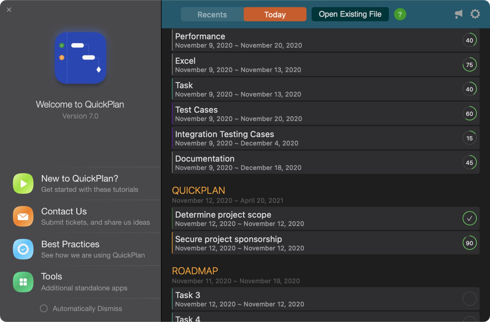 - Add QuickPlan widget to screen, and configure the content in the widget by selecting a project from the tracked projects.