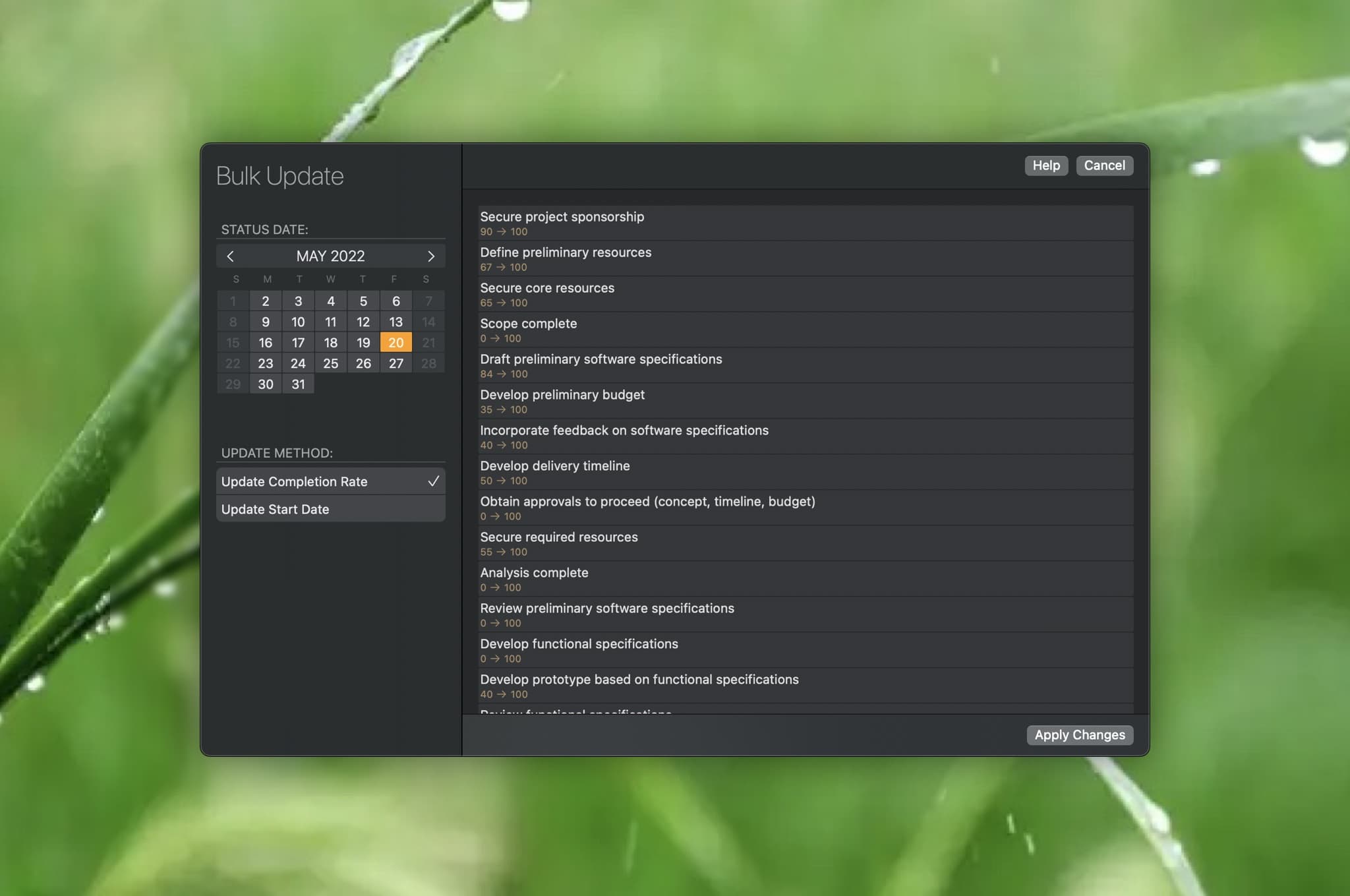 - In day-to-day project management, it is necessary to update the status of completion or to change the schedule for tasks that are currently delayed.