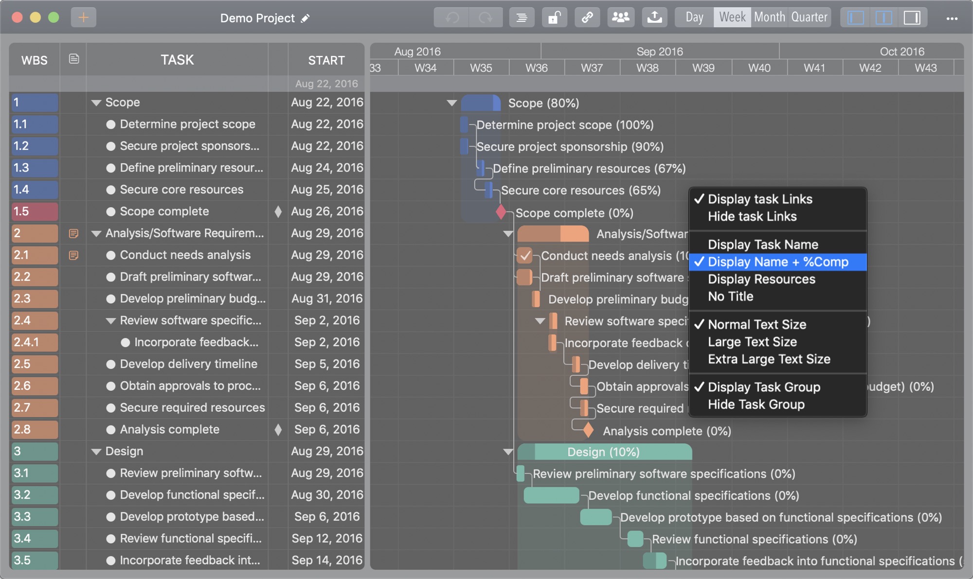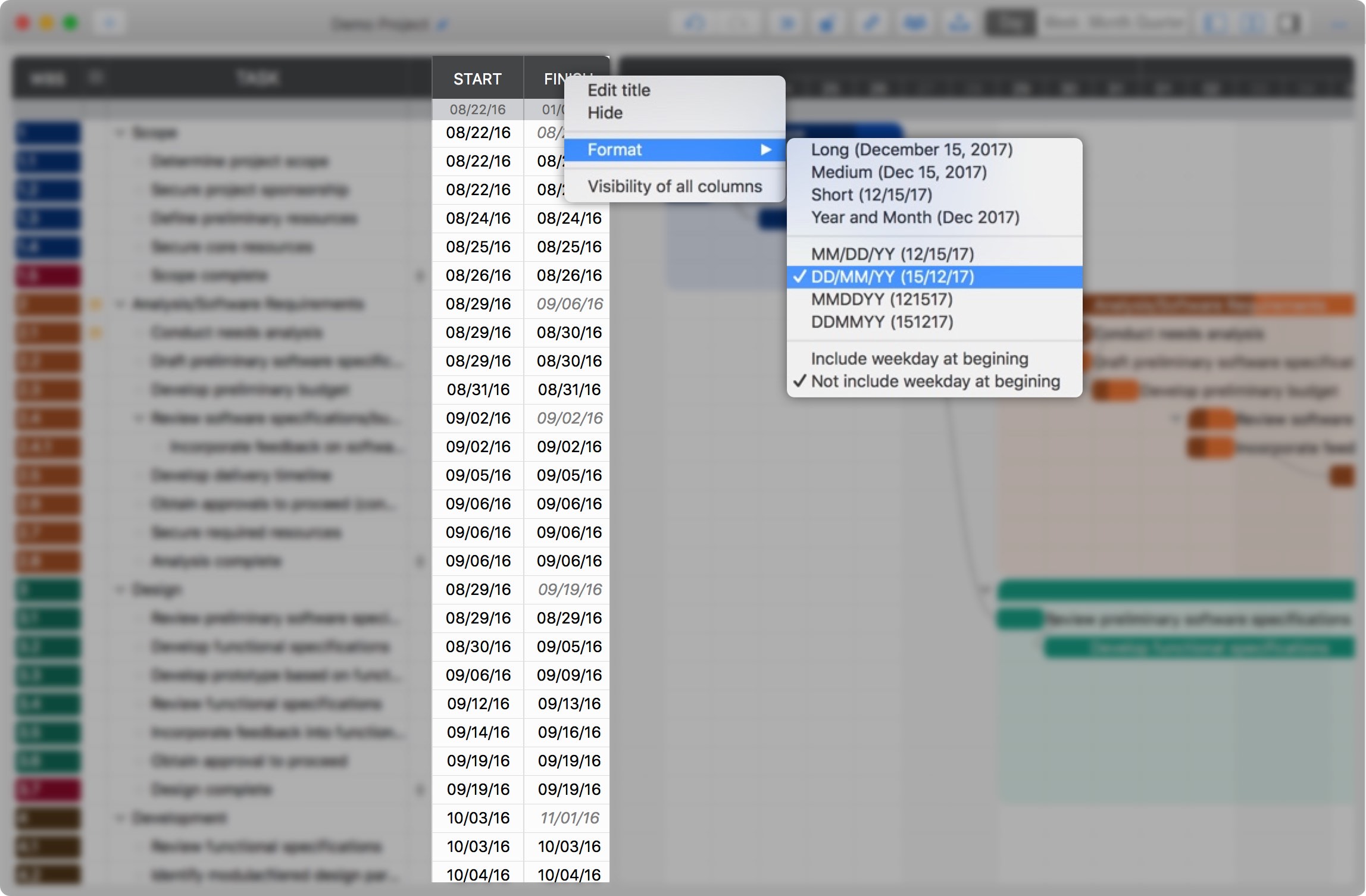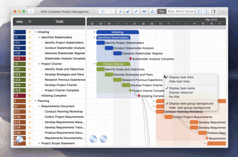 QuickPlan provides strong customization functionality, to help customize the user interface for the business needs, with more options cover the outline, chart, timeline display and functions