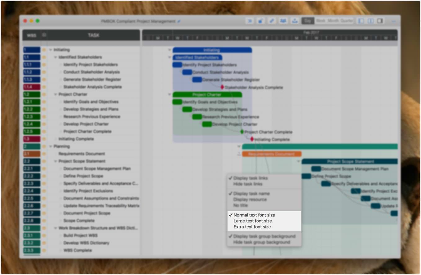 [version 2.1 update] Option to change the text font size on the Gantt Chart. This option will only impact the display of the user interface (the font size option of the PDF exporting is separated).