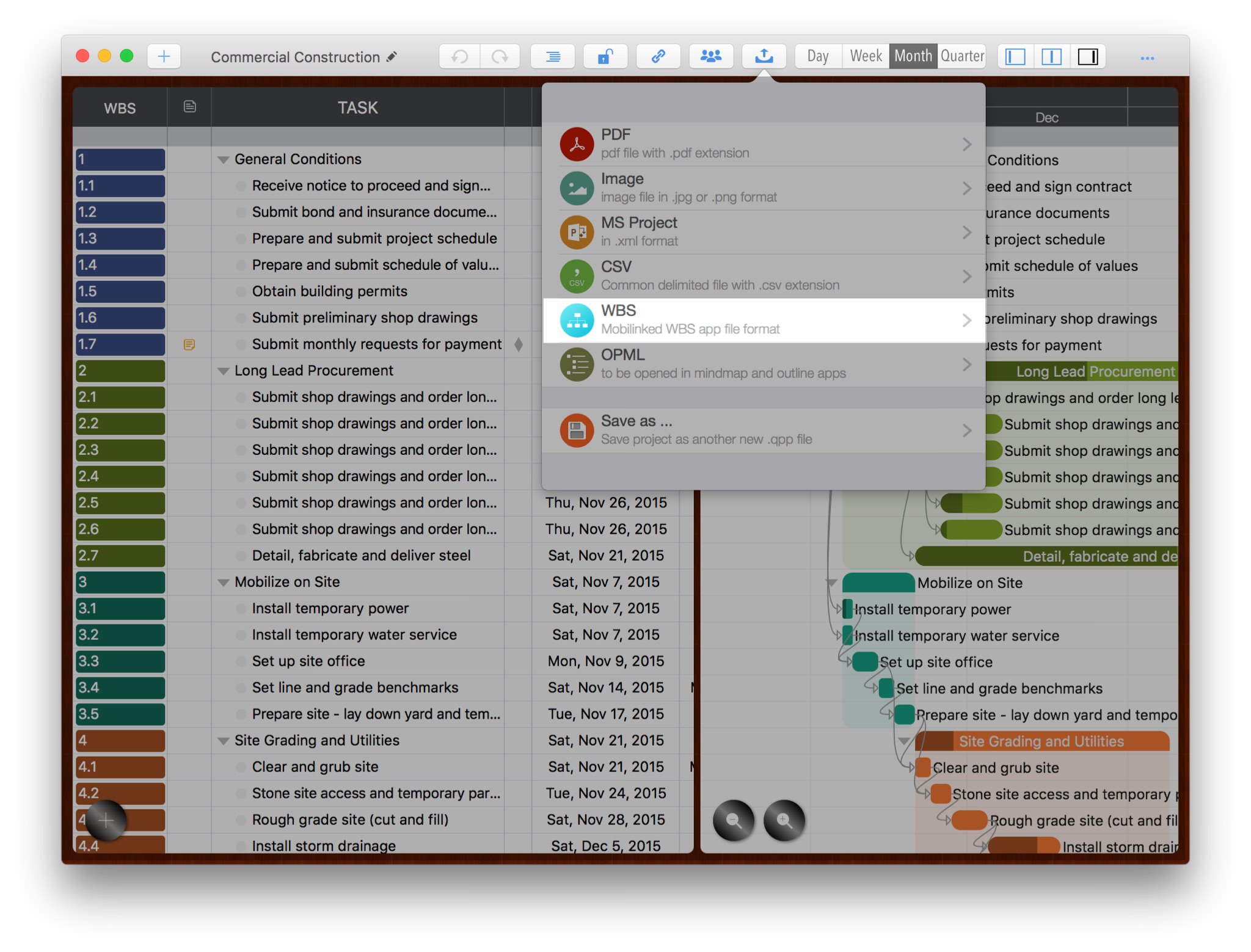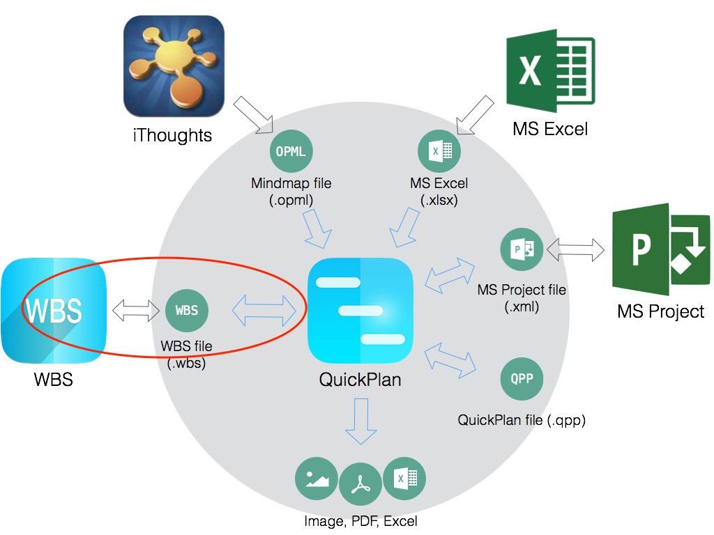 In normal project management process, the WBS is able to be the input of a project schedule, but the project schedule is not the input of a WBS. QuickPlan provides the capability to export a project to a WBS file is for the convenience of showing project executing result to customer in WBS tree format