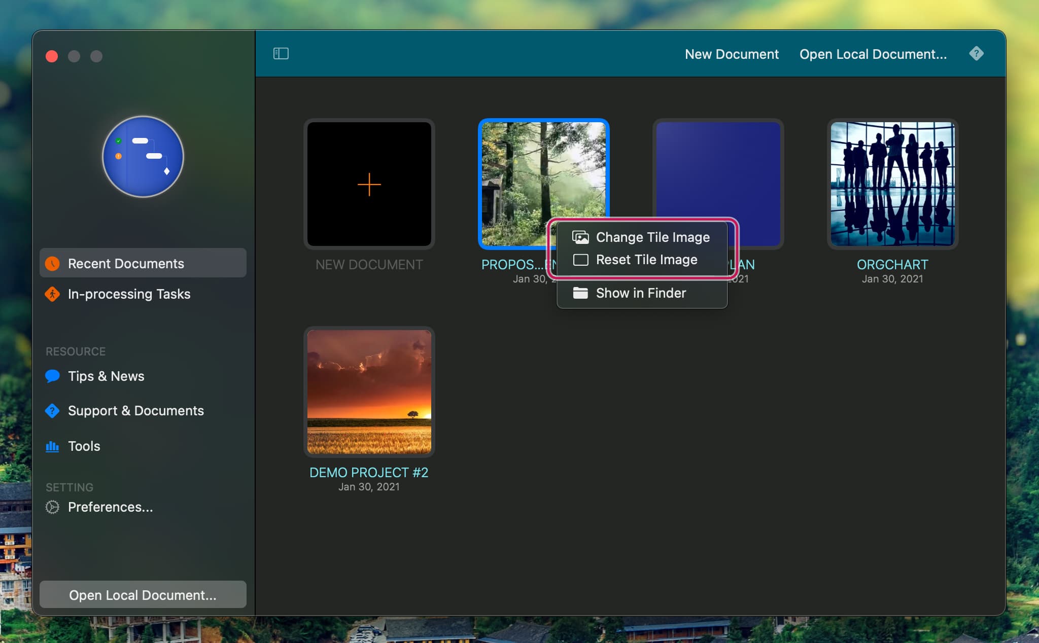 Right-click on a tile to customize the tile's color and image. QuickPlan supports changing the tile image by dropping an image from Finder, Photos, and Web pages.