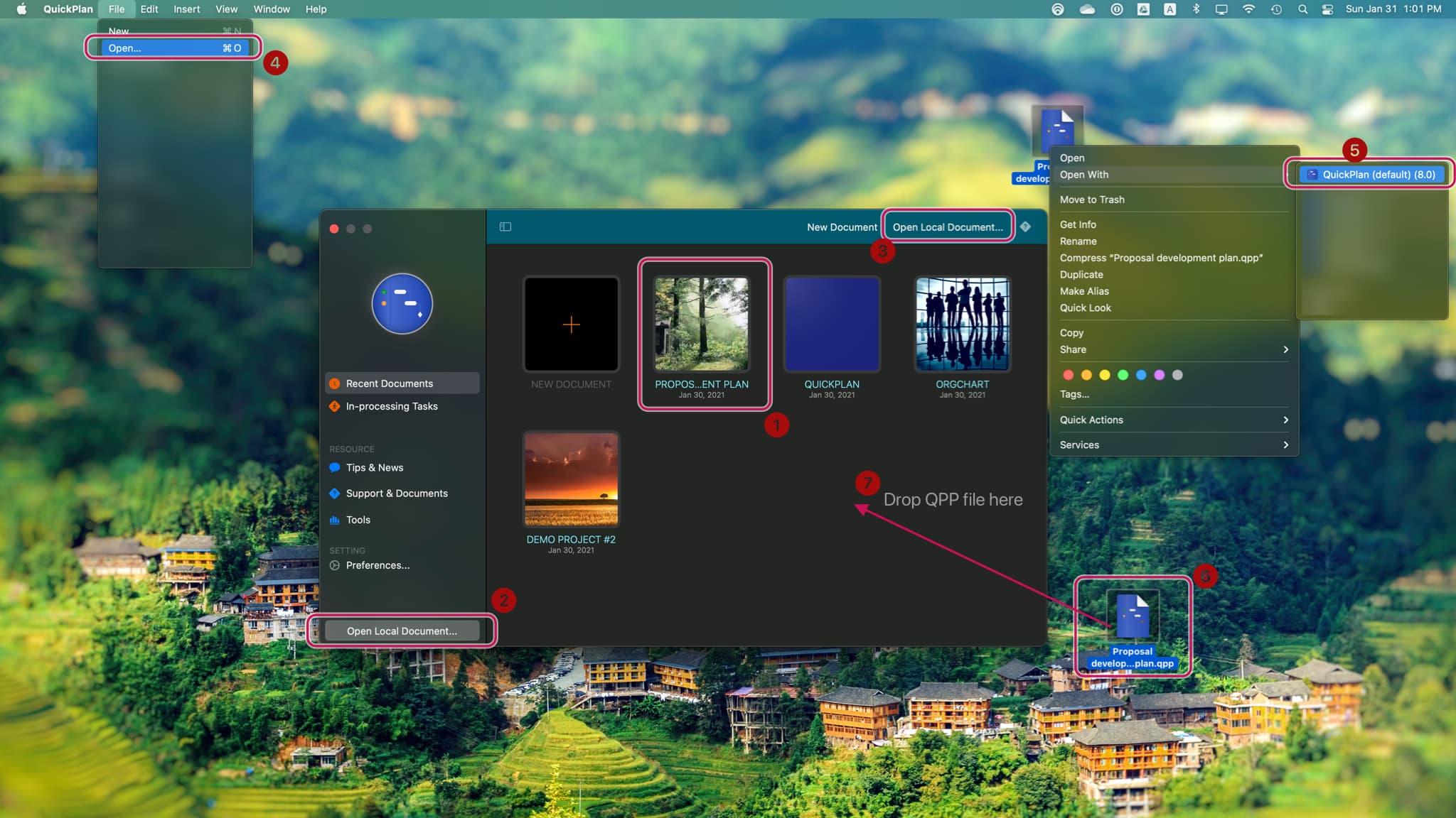 QuickPlan makes opening a project flexibly by providing variables methods to open a project.