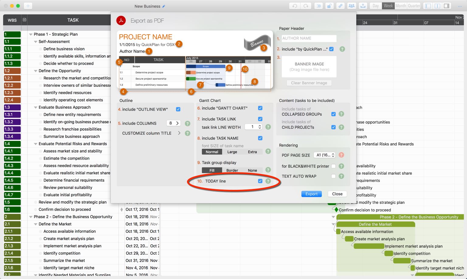- Task link line width – For the situation that exporting as a large size PDF file (for example A1), but print on a small paper (for example A4). The printing result will be zoomed and if the link line width is small, it may disappear.