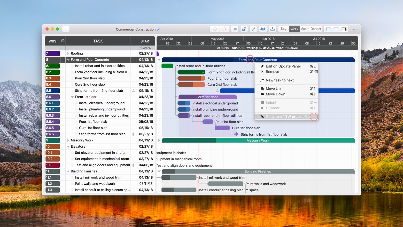 Right-click a task group and select to save as a new project